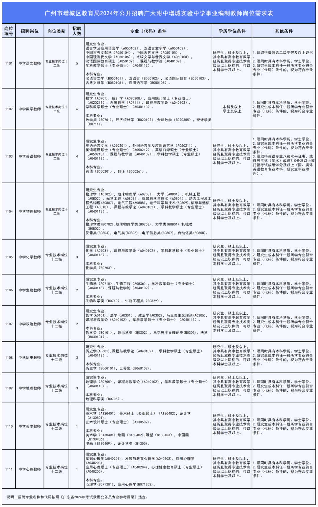 2.岗位专业条件。应聘人员所学专业必须符合应聘岗位的专业条件要求;研究生或本科所学专业符合应聘岗位专业条件的,视为符合专业条件。所学的专业以毕业证的专业名称为准,专业名称后面以括号等形式列出的培养方向不能作为报考专业的依据。岗位需求表专业名称及代码依照《广东省2024年考试录用公务员专业参考目录》(附件2)执行。如应聘人员(含国、境外学习人员)所学专业名称未列入《广东省2024年考试录用公务员专业参考目录》 ,但所学专业主要课程与报考岗位要求专业的主要课程基本一致的,须在资格复审时提供课程成绩单(毕业院校盖章,国、境外学习的须提供课程名称中文翻译材料),经招聘单位认定为相近专业的方可报考。