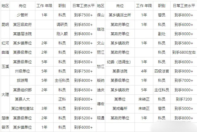 首先,从薪资水平来看,云南公务员的年收入大致在11万至15万元之间,这一水平在云南省的整体收入结构中属于中等偏上。当然,具体的薪资水平还会受到岗位、职级、工作年限等多种因素的影响。一些高级别或特殊岗位的公务员,其年薪甚至可以达到20万以上。但需要注意的是,这仅仅是薪资收入,公务员的福利待遇还包括各种津贴、补贴、奖金等,如住房补贴、交通补贴、节日福利等,这些都在一定程度上提高了他们的生活水平。
