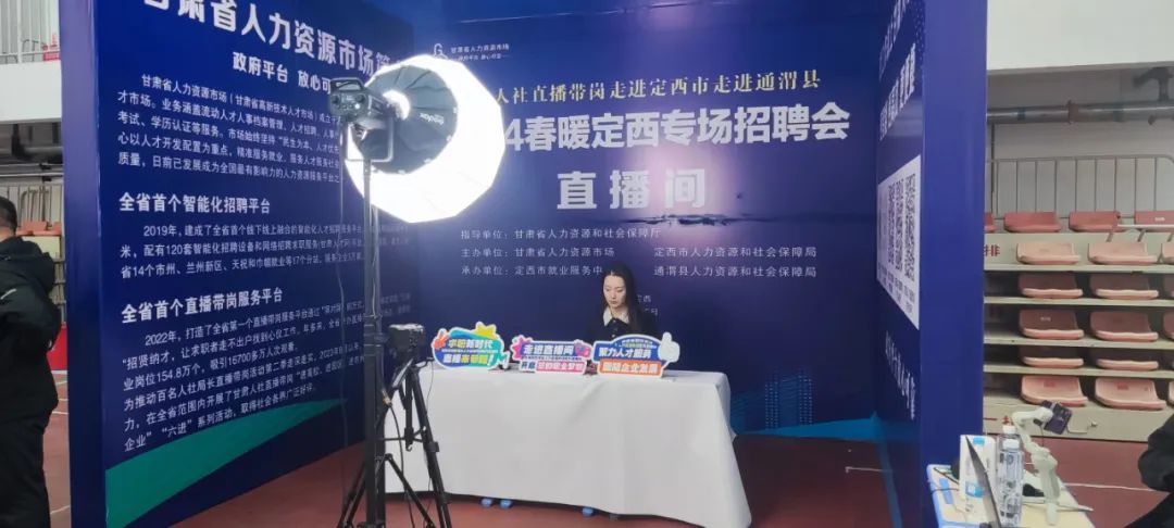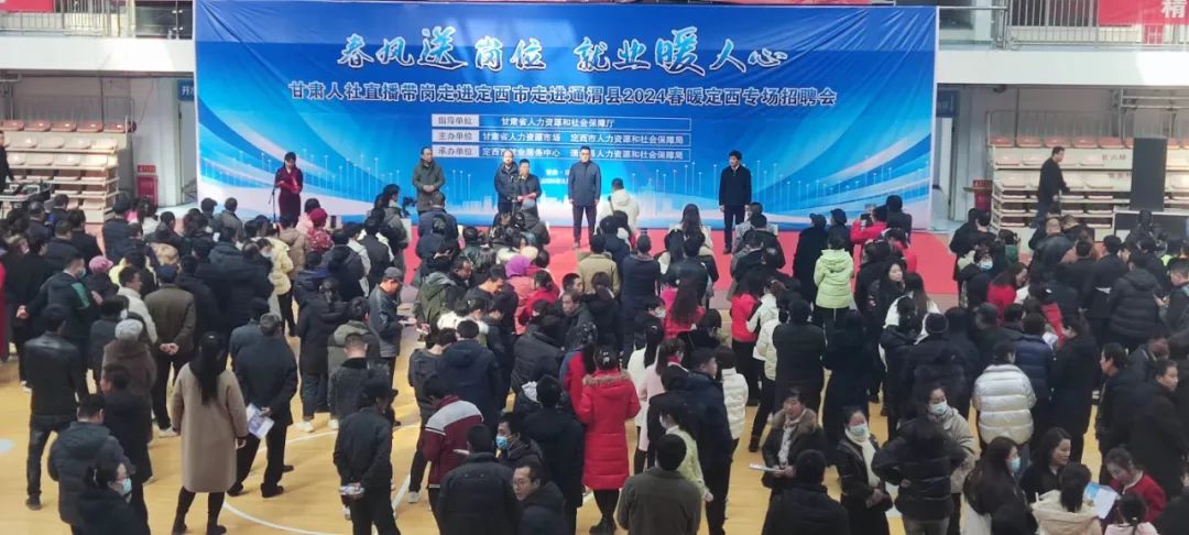 “甘肃人社直播带岗走进市县暨定西●通渭2024年春暖定西专场招聘活动”在通渭县体育馆成功举办