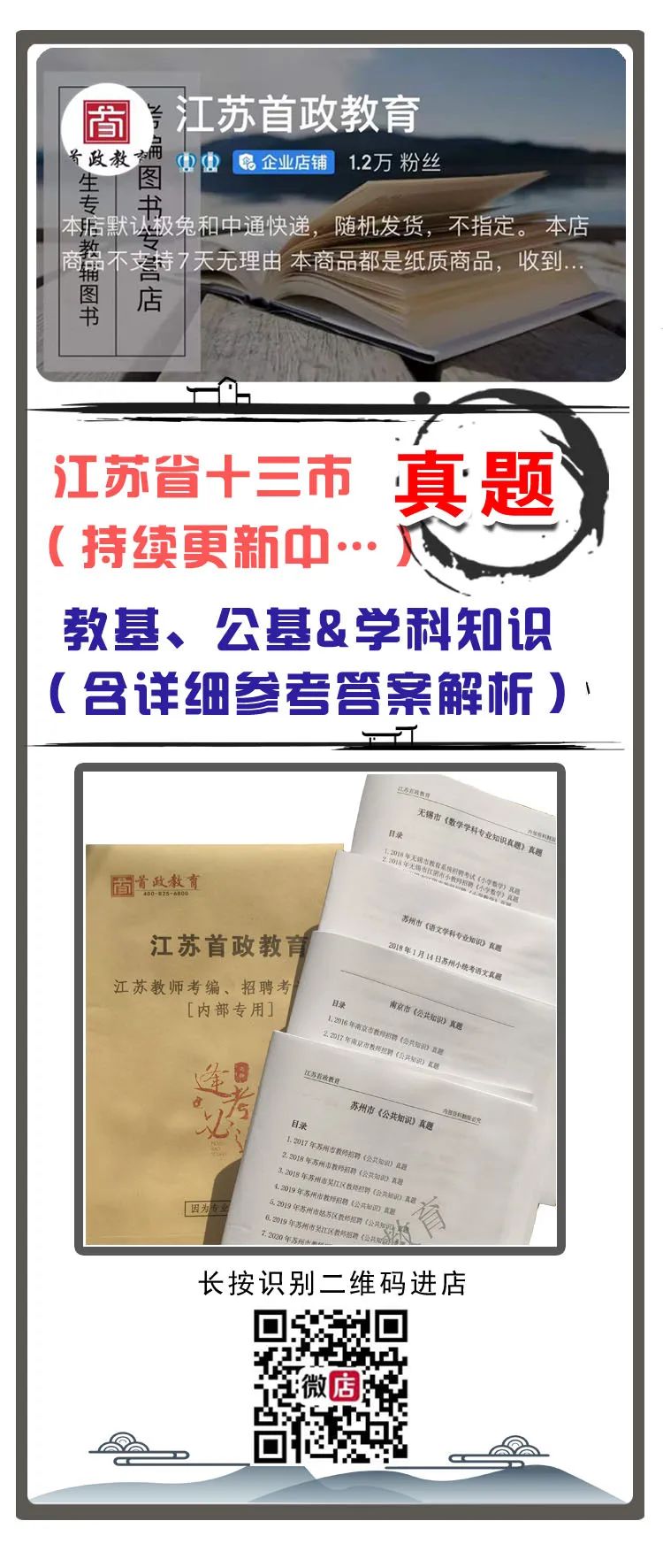 首政教育提醒您:江苏各市历年真题可以扫下方二维码在《首政教育微店》直接购买。(仅售纸质版,包含详细答案解析)