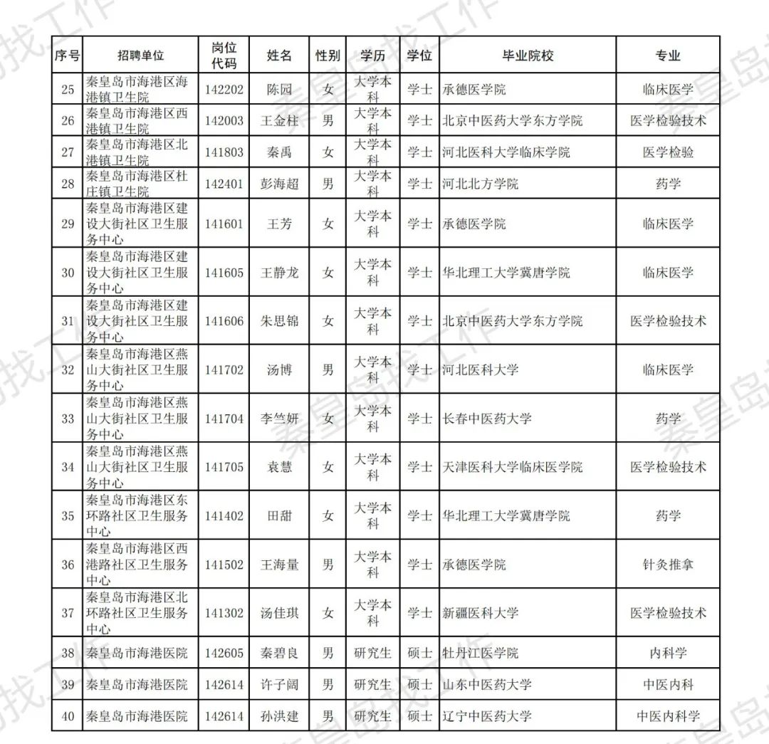 根据《秦皇岛市2023年事业单位公开招聘工作人员公告》,经过报名、资格审查、笔试、资格复审、面试、体检和考察等程序,确定曹明升等40名考生为拟聘用人员(详见附件),现予以公示。