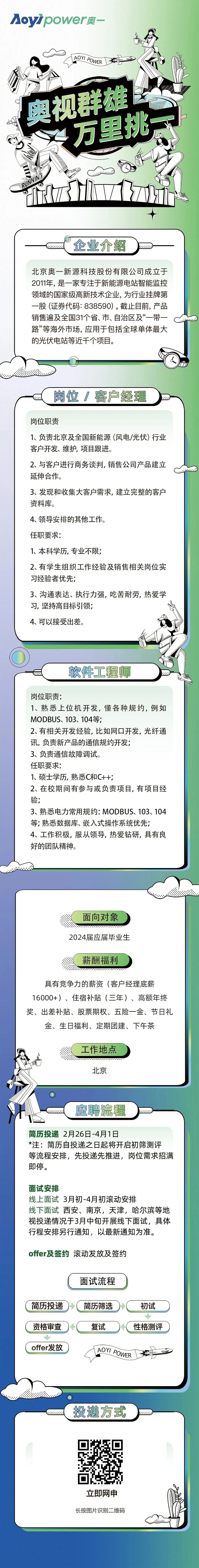 >招聘快讯 | 奥一新能源科技股份有限公司2024校园招聘