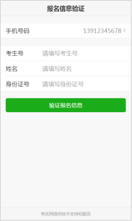 考生填写自己的考生号、姓名、身份证号信息,系统验证考生信息是否正确,是否报考我校。