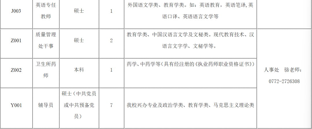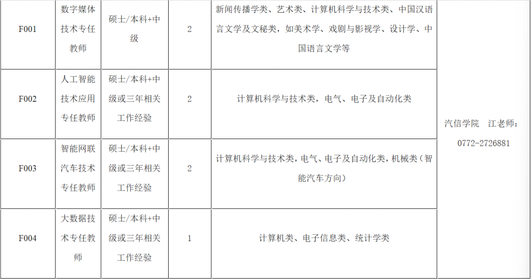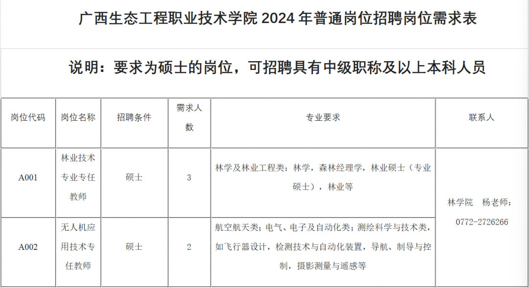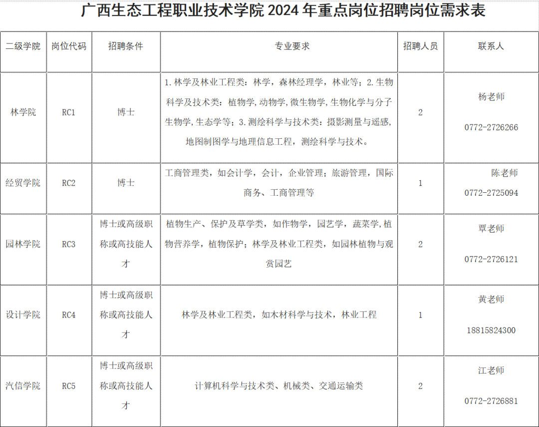 详见:附件《广西生态工程职业技术学院2024年人才需求表》