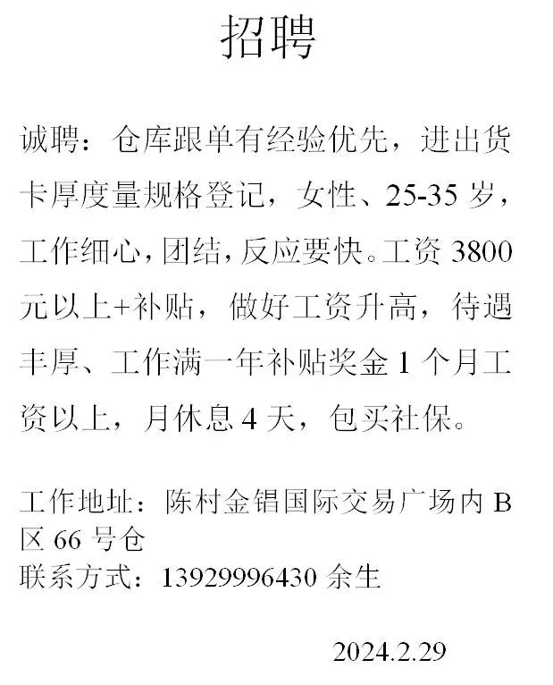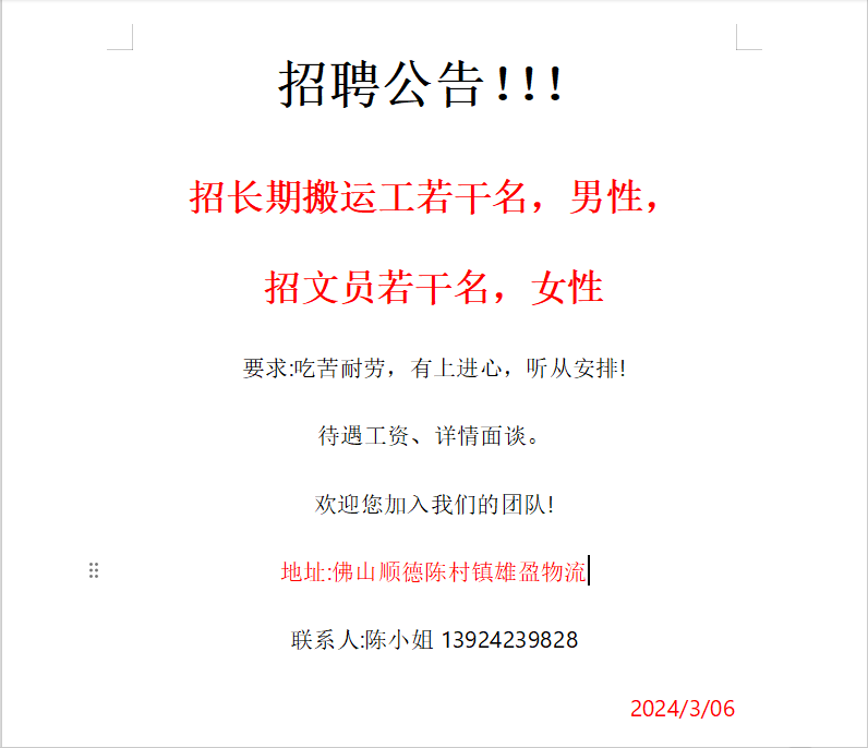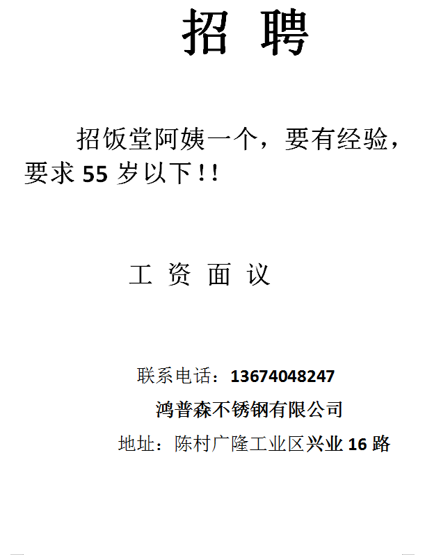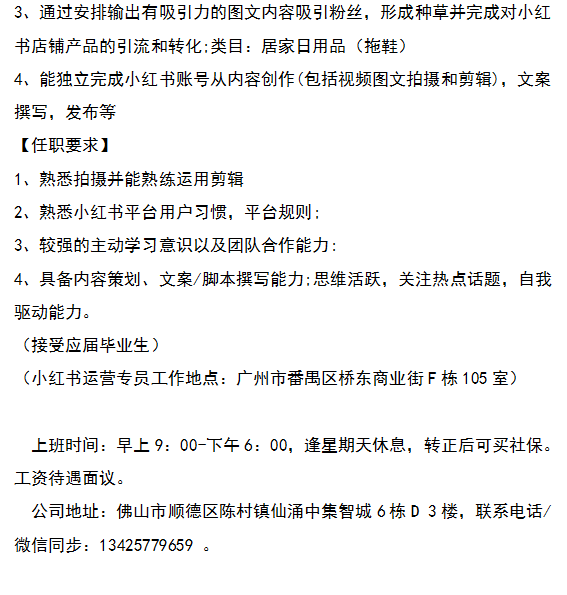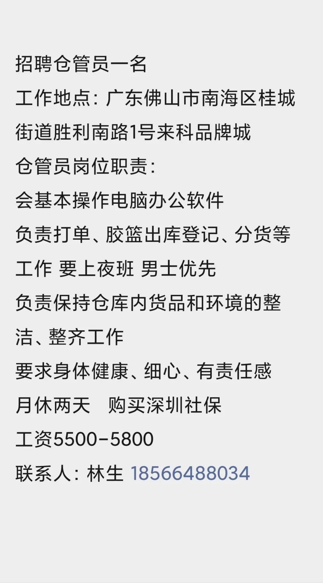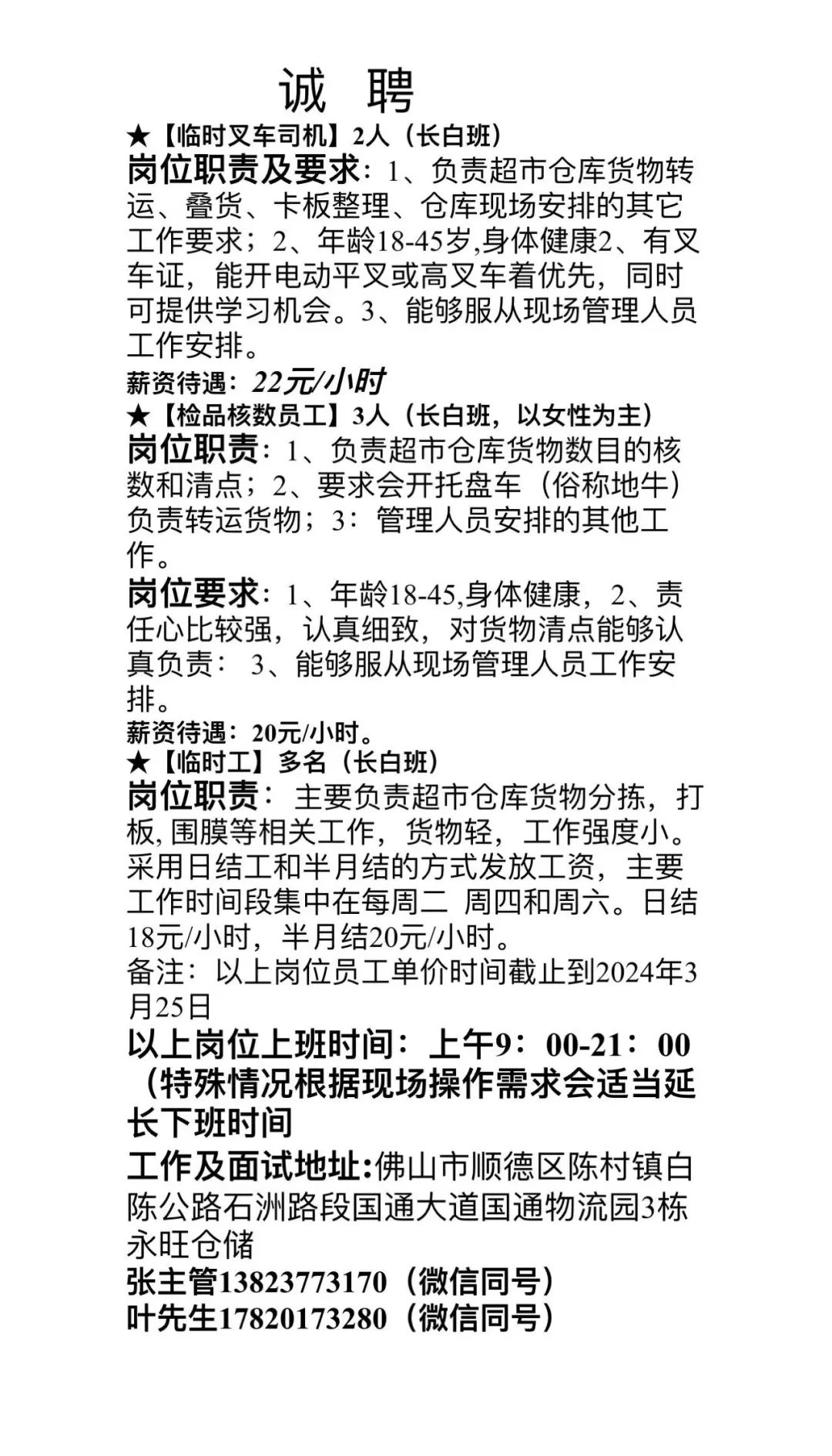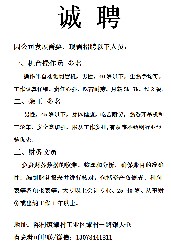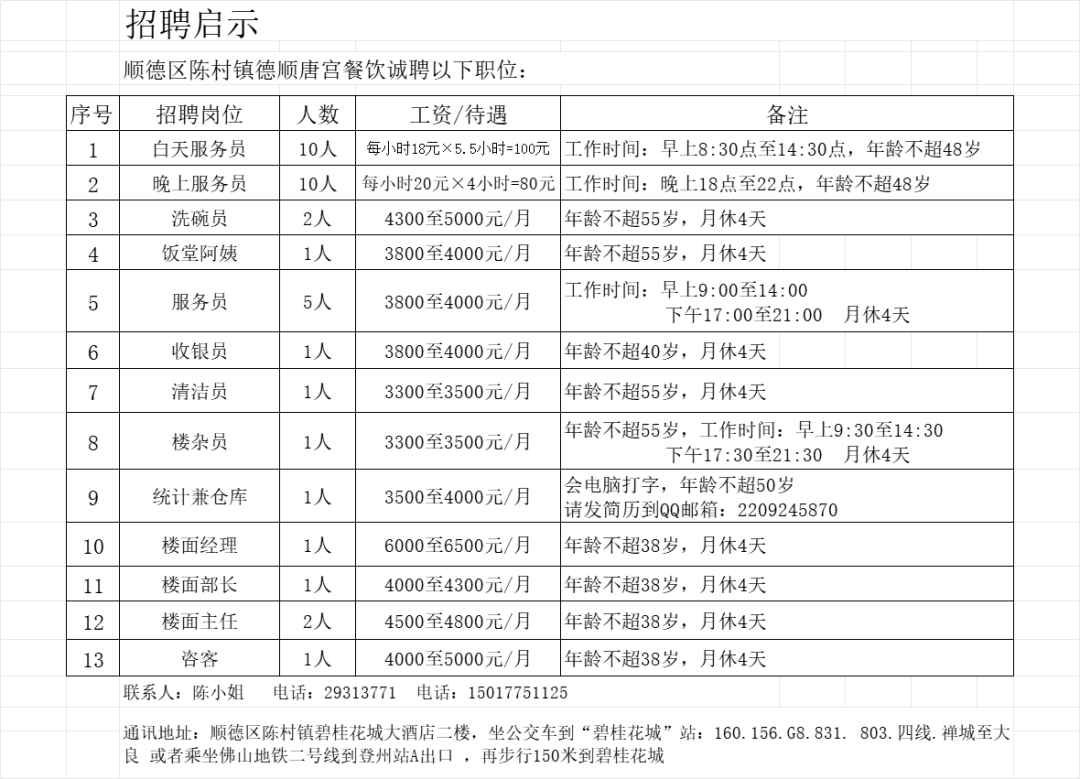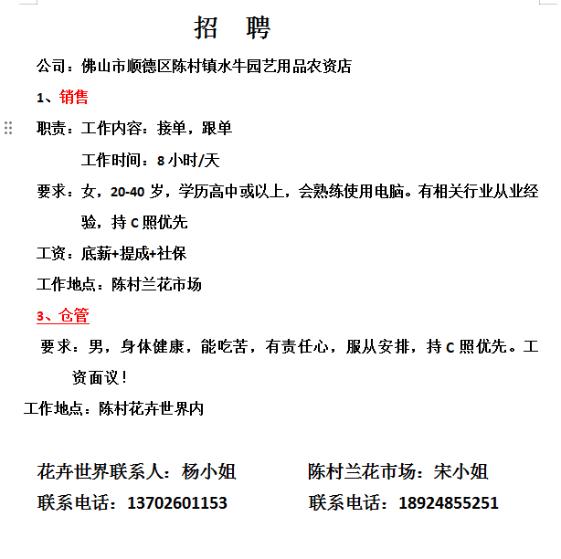 亲,联系时请说明在陈村街坊或陈村招聘看到的,谢谢