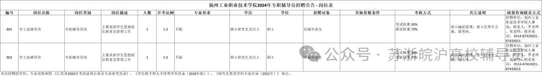 扬州工业职业技术学院人事处负责回答此次招聘政策咨询。