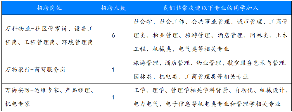 *岗位发布及更多其他岗位详情以万物云校园招聘官网