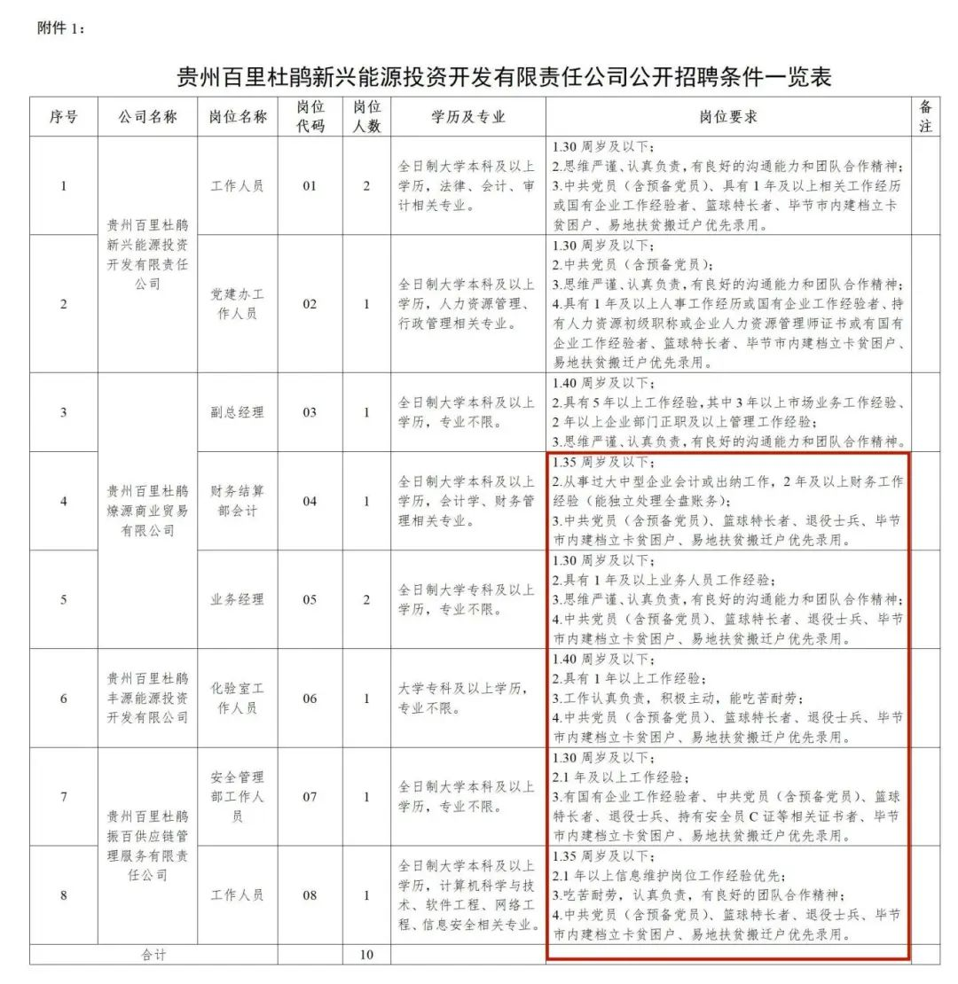 2.报名方式:邮箱投递《贵州百里杜鹃新兴能源投资开发有限责任公司面向社会公开招聘工作人员报名表》(请张贴本人近期1寸彩色证件照片电子档)、基础材料(身份证、毕业证、学位证、职称证书)及工作证明等电子扫描件以电子邮件的方式发至简历接收邮箱;邮件标题请注明:姓名+专业+应聘岗位。
