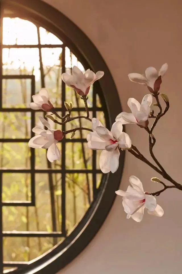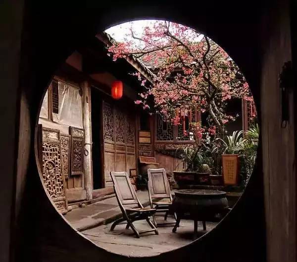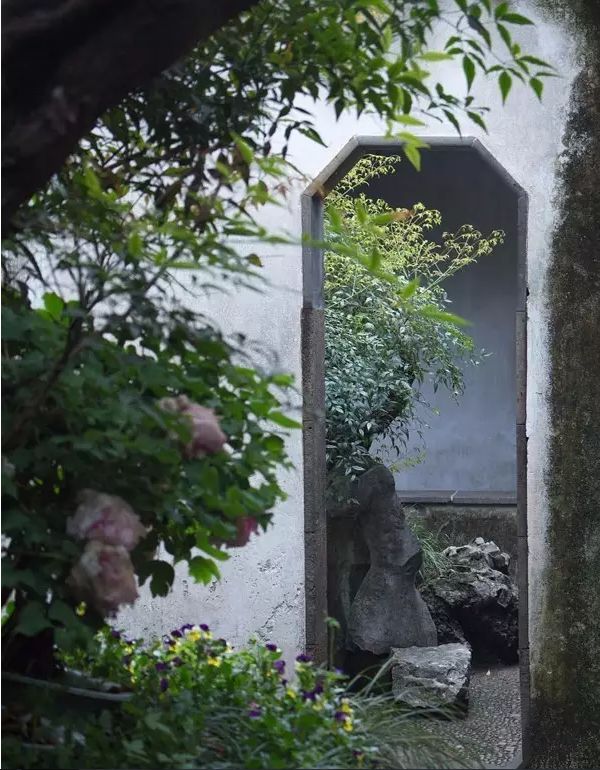 花草树木抱合而成的景框将庭院里的风景框于其中,透过若隐若现的花草树木,目之所及,皆是一种美。