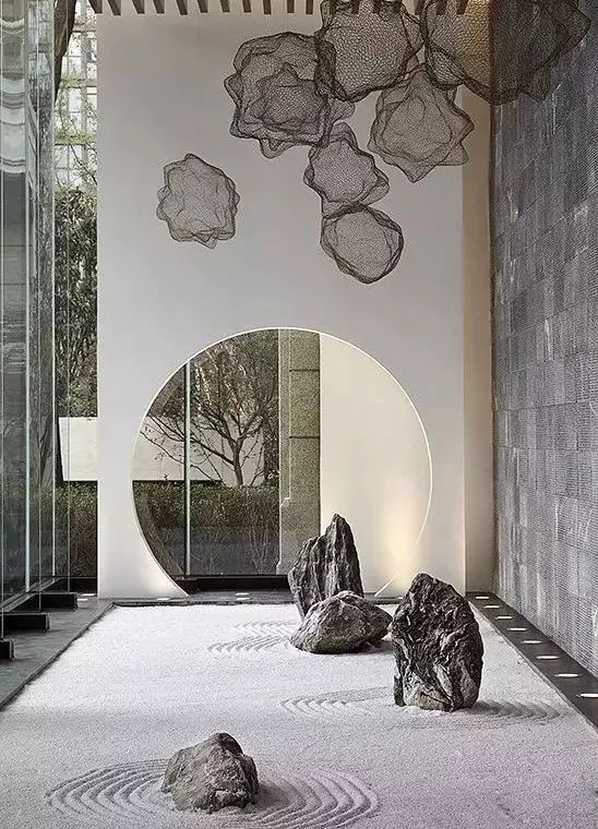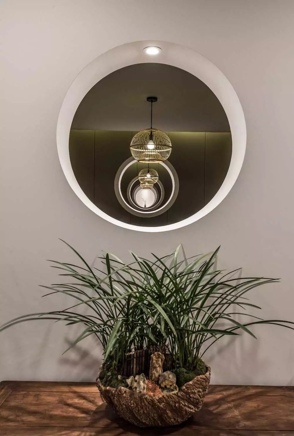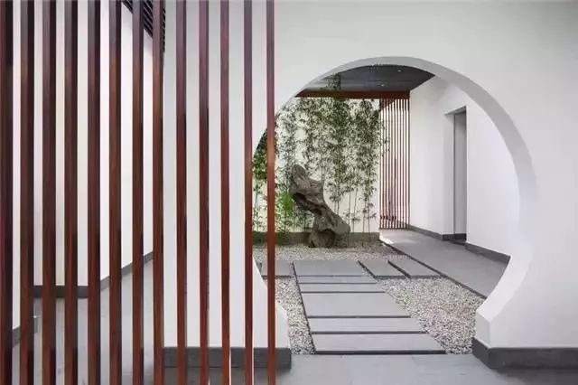 中式圆窗被运用于现代建筑里,浓浓的中式风背后,圆窗圈出一幅幅圆形的画面,是风景,更是意境。