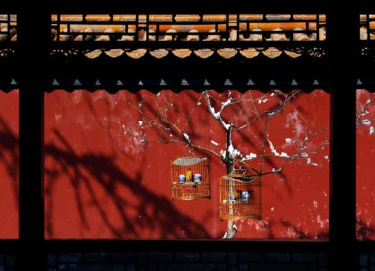 梁柱将空间进行多层次的框架分割,不同的角度、不同的梁柱之间造就了变化多样的梁柱框景,体现出中国建筑的虚实之美。