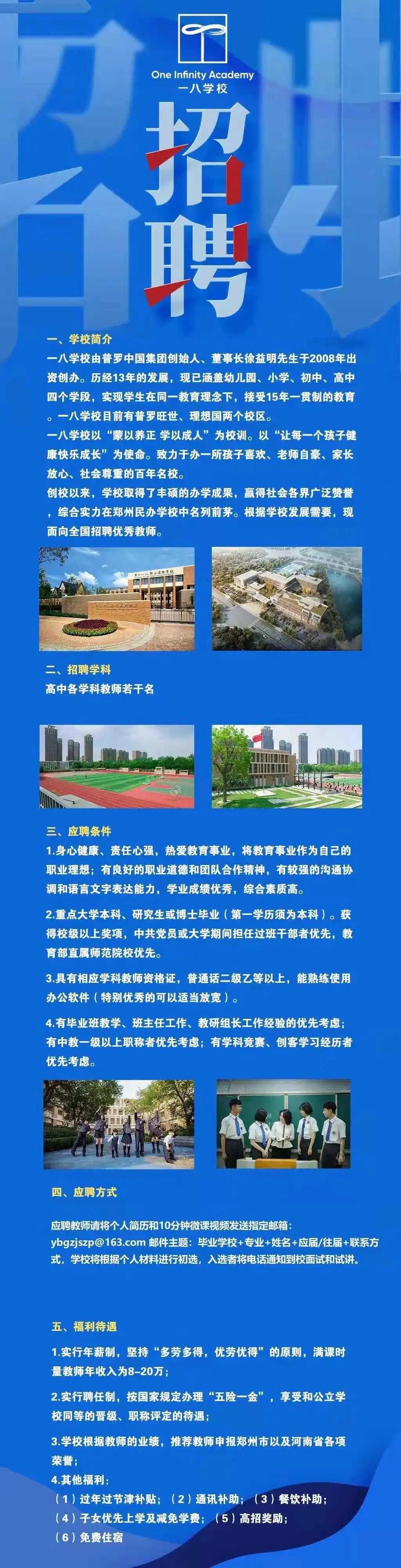 >【郑州招教】郑州市一八学校招聘教师公告(报名时间:即日起)