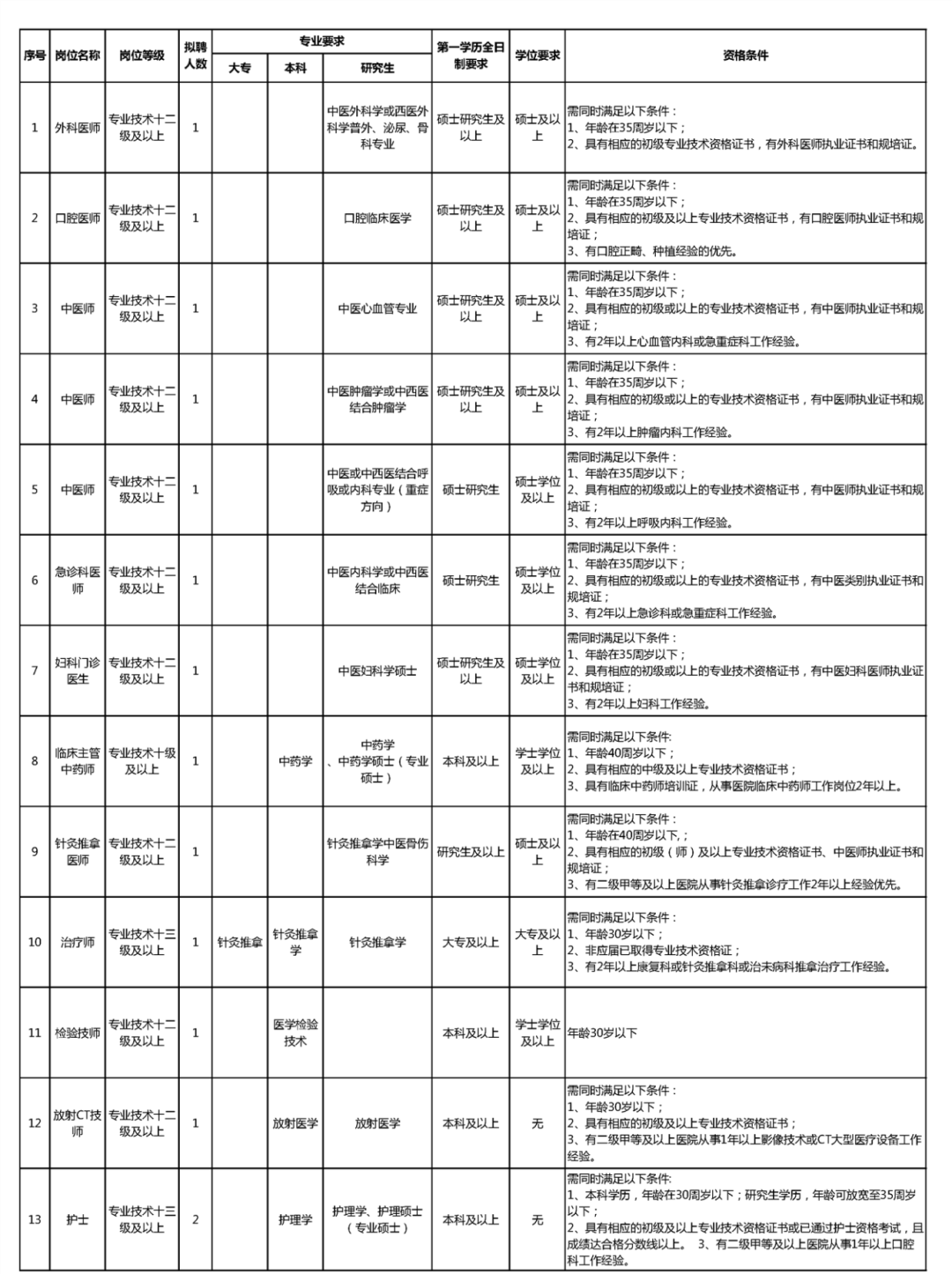 1. 具有中华人民共和国国籍,遵守中华人民共和国宪法、法律和法规,具有良好的品行和职业道德。吃苦耐劳,热爱医疗卫生健康事业,具有良好的专业素质和爱岗敬业精神。