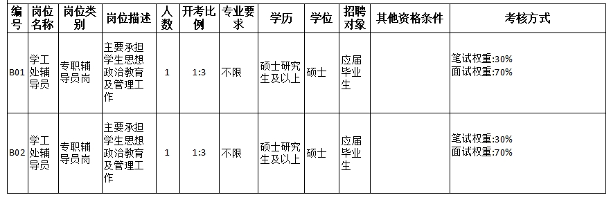 (三)适应岗位要求的身体条件。能从事教学、科研、学生思想政治教育及管理一线工作。