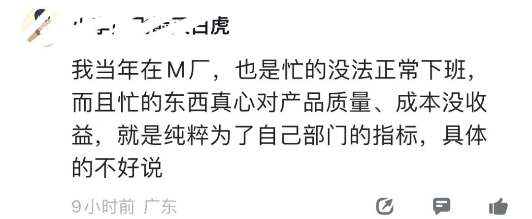 公司产品的质量,不是靠加班就能做好的,而是需要好的人才。公司的部门都是自私的,只是完成自己的指标,不会管其他,我们在公司工作,要的是那份薪水,能力的提升,其他的也只能顺从。