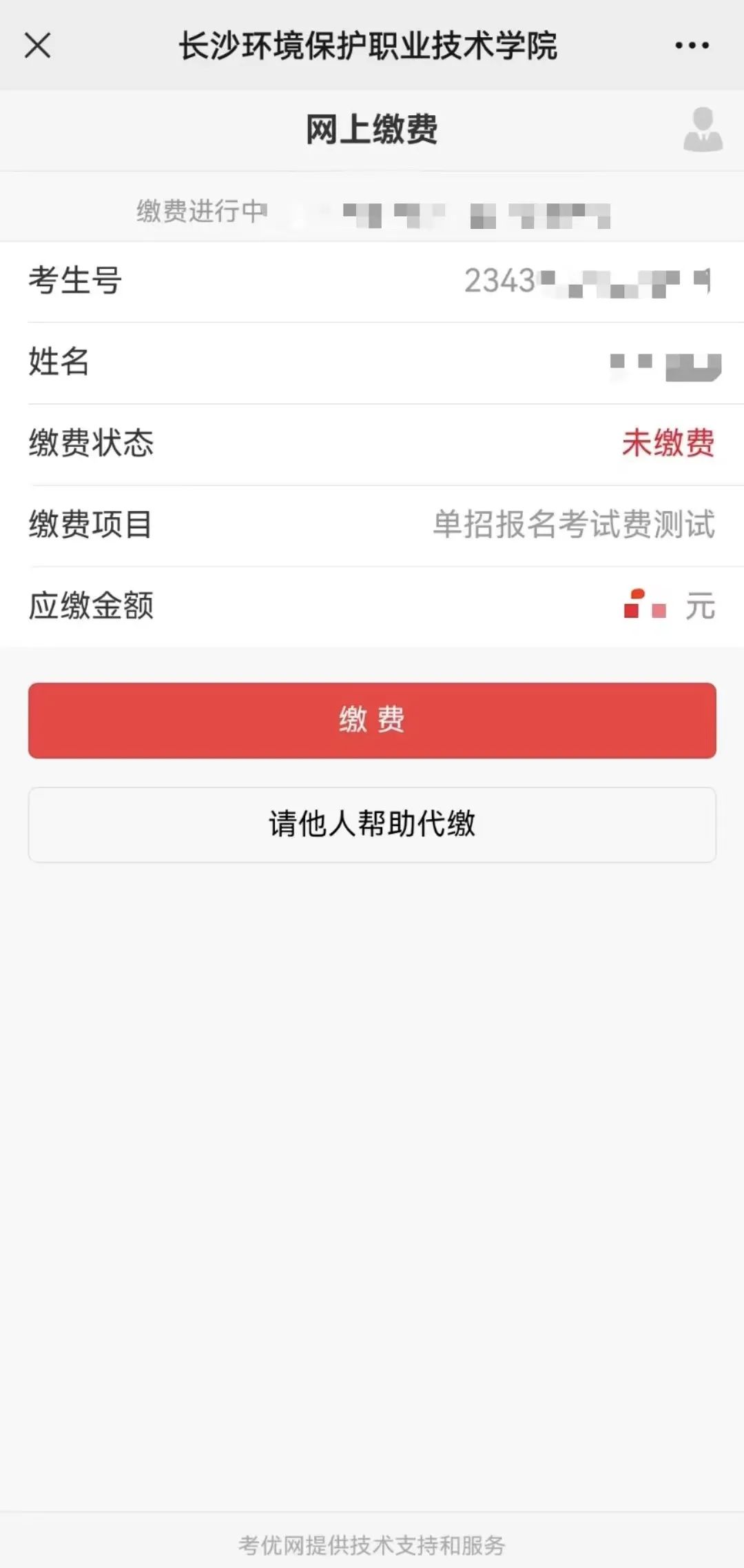 2.请考生关注“长沙环保职院招就处”微信公众号后进行缴费。