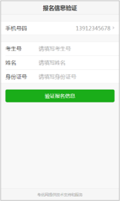 考生填写自己的考生号、姓名、身份证号信息,系统验证考生信息是否正确,是否报考我校。