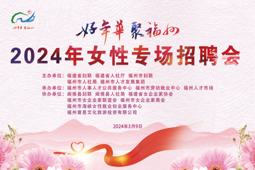 为深入实施福建省女性就业创业促进计划,为广大女性求职者提供精准的岗位对接服务,进一步促进我市女性高质量就业创业,福建省妇联、福建省人社厅、福州市妇联、福州市人社局、福州市人才发展集团等部门将于“三八”国际妇女节期间联合主办“好年华 聚福州”2024年女性专场招聘会。 ![]() 本场招聘会采取线上线下双轮驱动模式 为用人单位和求职者提供多样化选择 一起看看 招聘活动的安排吧 “好年华 聚福州” 2024年女性专场招聘会 线下招聘 时间:3月9日14:00-17:00 地点:闽侯县旗山湖公园北广场 重要事项提醒:届时,我市众多用人单位与高校应往届女大中专毕业生及其他有就业意向人员进行现场对接洽谈。现场还将开展政策宣传及咨询、职业规划指导等,为求职者提供一站式就业服务。 线上招聘 时间:3月5日到3月31日 平台:“福州人社求职招聘平台”(https://zph.fzrsrc.com/) 重要事项提醒:线上招聘会将持续进行,为不能到场参加的求职者提供更多的就业选择和信息交流机会。 ![]() “福州人社求职招聘平台”二维码 ![]() ▲旗山湖公园鸟瞰图 旗山湖公园位于福州大学城中心共享区,拥有福州最大的生态景观湖和10公里环湖步道,周边环绕着十余所大中专院校,文化氛围浓厚。3月9日下午14点至17点,“好年华 聚福州”2024年女性专场招聘会将在旗山湖公园北广场举办! 公园西门区域还同步举办以“桃花”为主题的文化艺术节活动和美食小吃活动,找工作的同时,既有“眼福”还饱“口福”。 本次招聘会共有113家企业,提供5754个岗位,其中博士岗位2个、硕士岗位15个、本科岗位657个、其他岗位5080个。国家知识产权局专利局专利审查协作北京中心福建分中心、福建浩蓝光电有限公司、福建中科光芯光电科技有限公司等优质用人单位将到现场与求职者进行对接,最高年薪可达50万元。 ![]() 长按识别下方二维码 即可进入“福州人社求职招聘平台” 2024年女性就业创业专场招聘专区 抢先了解招聘岗位信息 ↓↓↓ ![]() 旗山湖公园交通指南 公共交通指引: 【公交车】可乘坐48路、198路、326路、769路于“大学城体育中心站”下车,步行约5分钟至旗山湖公园北广场。 【地铁】乘坐福州地铁2号线于“董屿•福建师大站”C1口出站,步行约15分钟至旗山湖公园北广场。 “好年华 聚福州” 2024年女性专场招聘会 春风送“岗” “职”等你来! END