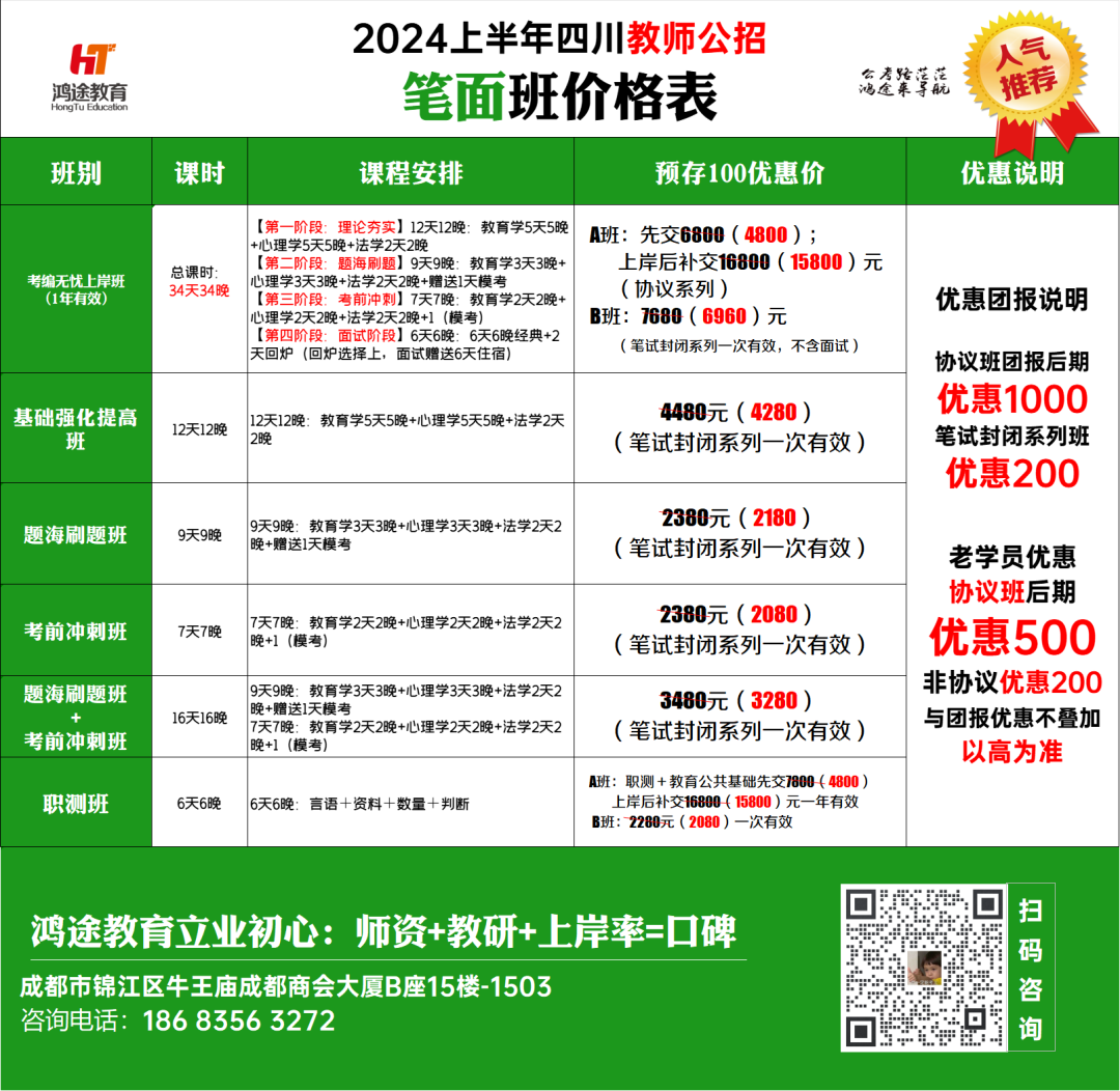 笔试早行动,上岸近一步 教师、事业单位笔试培训班 正在火热招生中 【前期只收学杂费,考上后才付学费】 金牌讲师,超长课时! 预约热线:安琪老师18683563272(微信同号