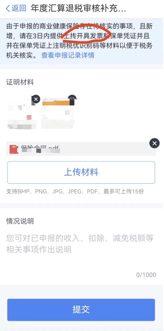 证明材料选填,建议大家还是上传一下,不要学我。为啥呢?因为我发现同样是税优产品的低税,大家都没要求提供证明材料,可是我收到一个客户反馈,被税务局要求提供更加详细的合同资料了。