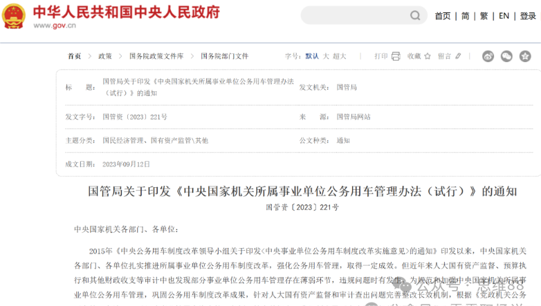 去年9月,国管局发布了一项重要的通知——《中央国家机关所属事业单位公务用车管理办法(试行)》。这项管理办法不仅标志着公务用车制度的一次重大创新,更是在公务用车改革进程中迈出了坚实的一步。它的实施,旨在进一步规范公务用车的配置和使用,加强公务用车的日常管理,切实保障公务用车的安全、规范和有效使用。