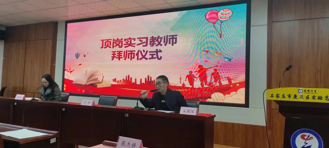 在学校主干教师的陪同下,鹿泉高级实验中学组织进行了拜师仪式,为实习老师分配了一对一的指导老师。