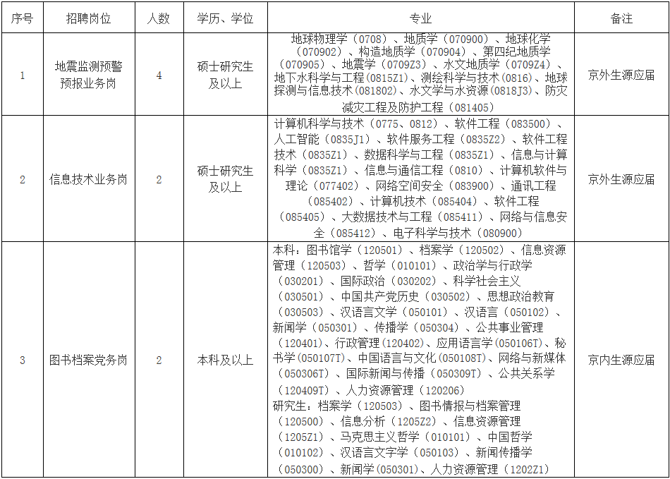 根据《事业单位人事管理条例》《事业单位公开招聘人员暂行规定》和《中国地震局进人管理办法》等有关规定,中国地震台网中心现公开招聘事业单位工作人员。现将有关事项公告如下。