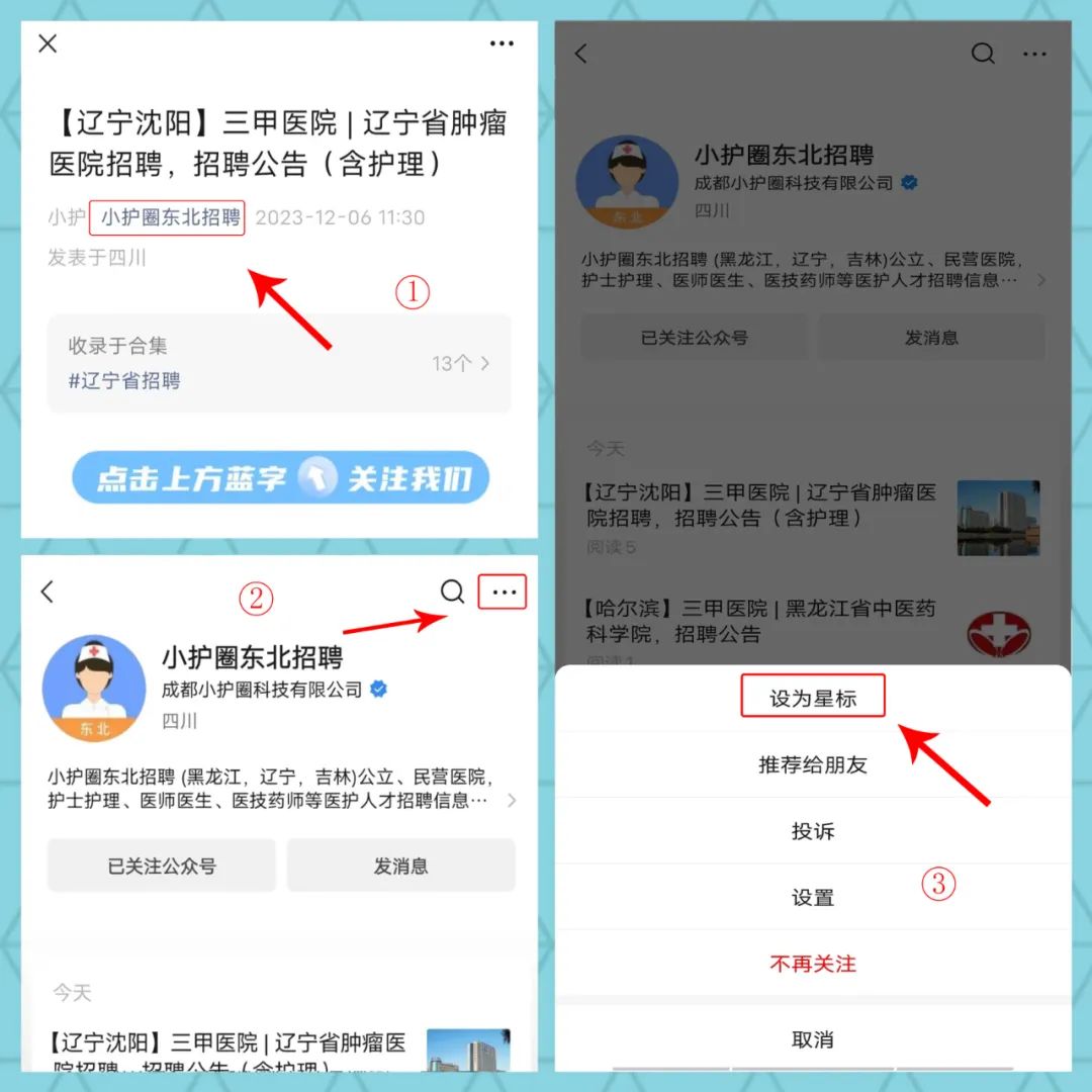 由于微信公众号改版,很多读者朋友反映,最近在订阅号列表里找不到我们了。为了防止和我们走散请给公众号“小护圈东北招聘”设个星标吧!不错过每天的招聘信息。