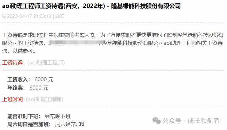 另一名员工,担任aoi助理工程师,月薪为6000元,年终奖仅一月工资,与行业中相同职位的薪酬相比,这样的待遇显然偏低。这位员工还需要经常加班,甚至周六也不例外,这反映了隆基在工作压力上的确不小。