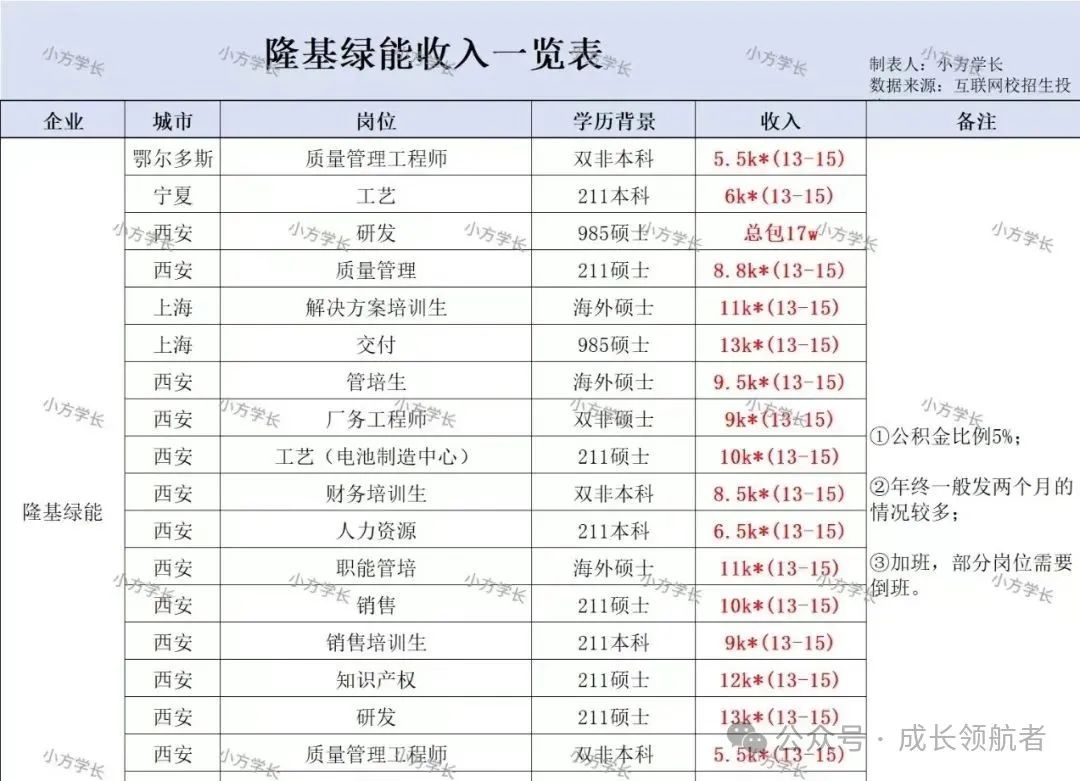在讨论隆基绿能的薪酬体系时,一些具体的岗位薪酬数据被公之于众,揭示了该公司在待遇方面的一些现实情况。