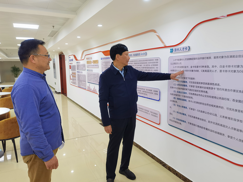 日前,漳州市台联党组书记肖永红、副会长卢芸艺一行赴漳州市人才一体化服务中心开展引进服务台湾人才工作调研活动,市人社局三级调研员谢福强、市人才一体化服务中心主任吴振斌陪同调研。
