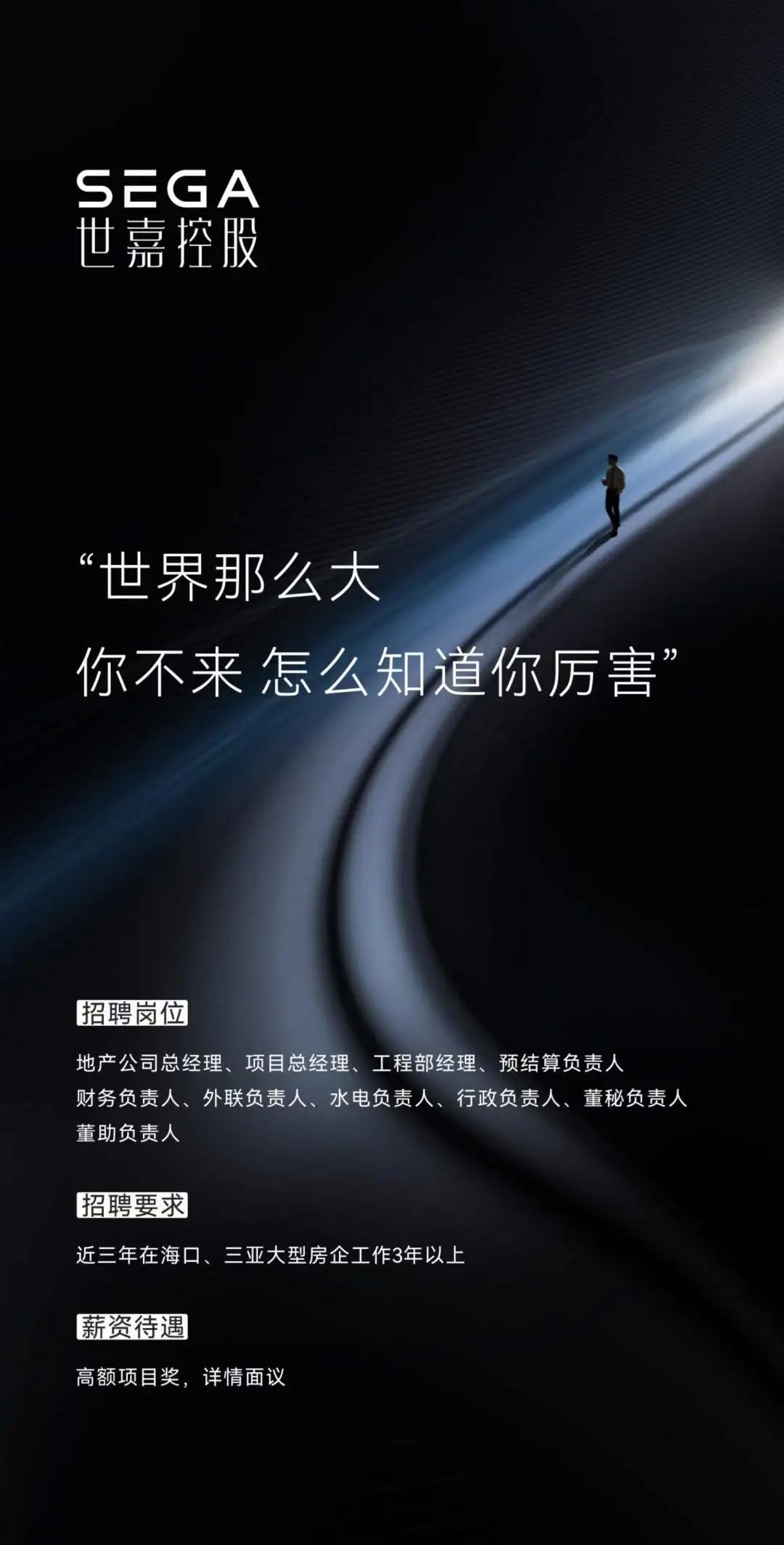 >海南 | 世嘉控股招聘!世界那么大需要你来看看~