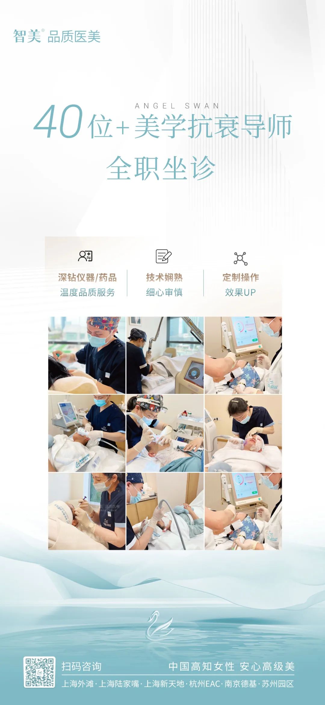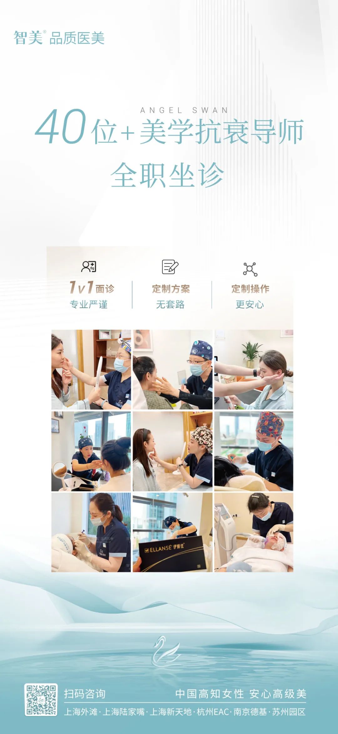 ![]() 智美40位+美学抗衰导师团,全职坐诊,全天候为求美者提供及时、有效的医疗服务,有足够的的时间和精力,耐心聆听、详细诊断,了解每位求美者的需求和问题,为他们提供个性化的治疗方案,量身定制操作方案。