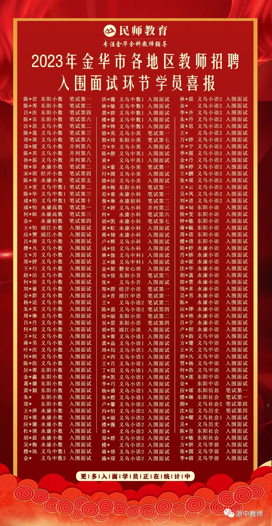 面试地点:浙江师范大学校内(报名时当面告知)。