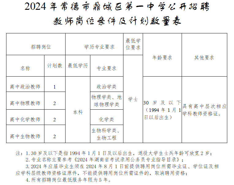 (2024年常德市鼎城区第一中学公开招聘教师报名表)