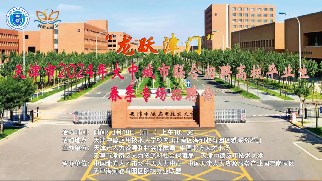 为深入贯彻习近平总书记关于高校毕业生就业工作的重要指示,坚决落实党中央、国务院关于稳就业工作的决策部署和市委、市政府工作要求,为高校毕业生求职择业和用人单位招聘人才提供精准对接服务,特举办“龙跃津门”天津市2024年大中城市联合招聘高校毕业生春季专场会,诚邀各企业参加!
