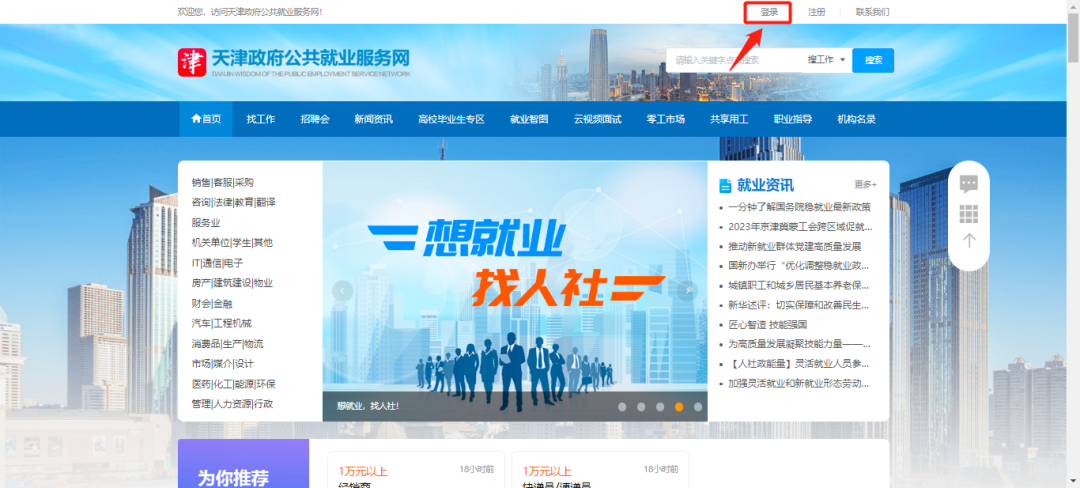 登录天津政府公共就业服务网。(http://zhzp.cnthr.com)
