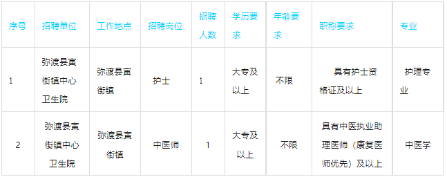 【大理招聘】大专即可!!大理州弥渡县寅街镇中心卫生院招聘公告!!
