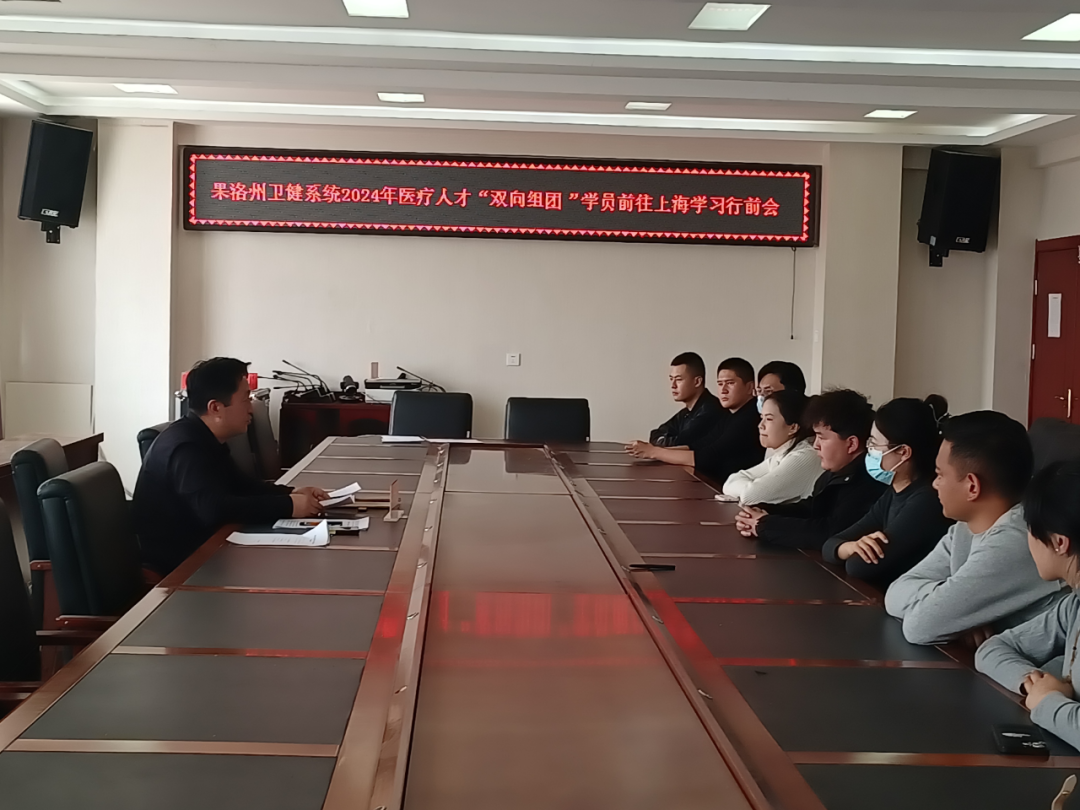 会上,从培训目的意义、行前准备、培训纪律、工作要求、学习方法、安全等6个方面,对医疗人才“双向组团”赴上海培训进修人员进行了行前教育,要求培训进修学员要严格遵守中央“八项规定”、《医疗机构工作人员廉洁从业九项准则》和“十严禁”工作要求,严格落实“谁派出,谁负责”的原则,注重行风建设工作,树立果洛卫生健康系统干部良好形象。要增强学习紧迫感,认清外出培训的重要性。通过医疗人才“双向组团”培养,有效激发自身的工作积极性,培育爱岗敬业、立足岗位作贡献的职业理念,提升服务能力和技术水平,进一步提高自身在所学领域所学专业方面科室规范建设、规范管理的能力。通过医疗人才“双向组团”培养,按照“团队带团队”“专家带骨干”“师傅带徒弟”要求,带动我州各医疗机构人才拓宽工作视野、更新工作理念、提升专业素质、增强奉献意识,培养一支业务精、留得下、能战斗、作风硬的符合果洛卫生健康工作实际的卫生人才队伍。