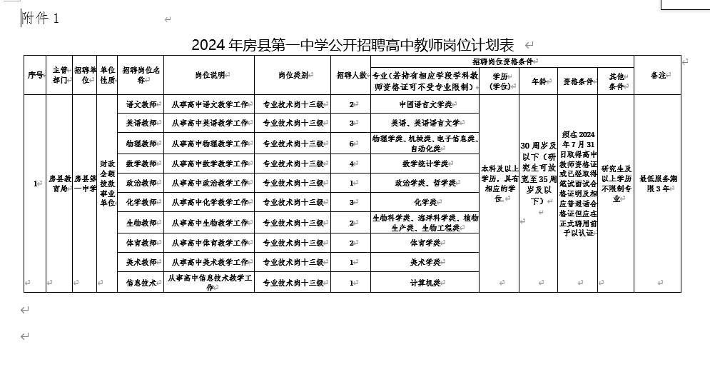 (二)现场报名。现场报名时间:2024年4月13日。在招聘现场由符合条件的人员现场填写《2024年房县第一中学公开招聘高中教师报名表》(附件2),现场审查报考人员报考资格,每位考生只能报考一个岗位。