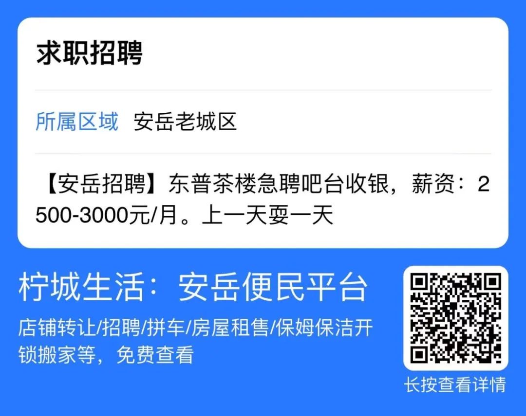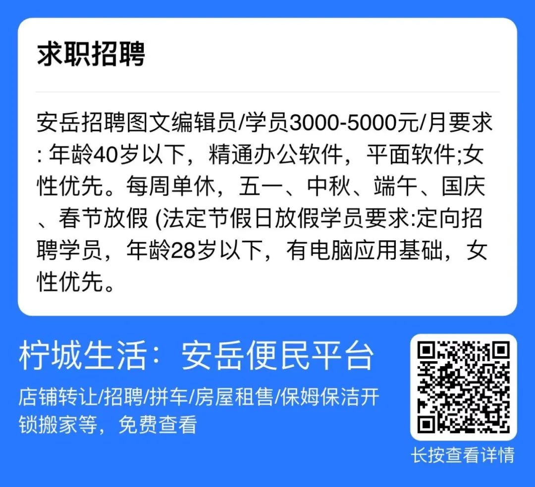 >安岳招聘:吧台收银、图文编辑员、饲养员、业务员...