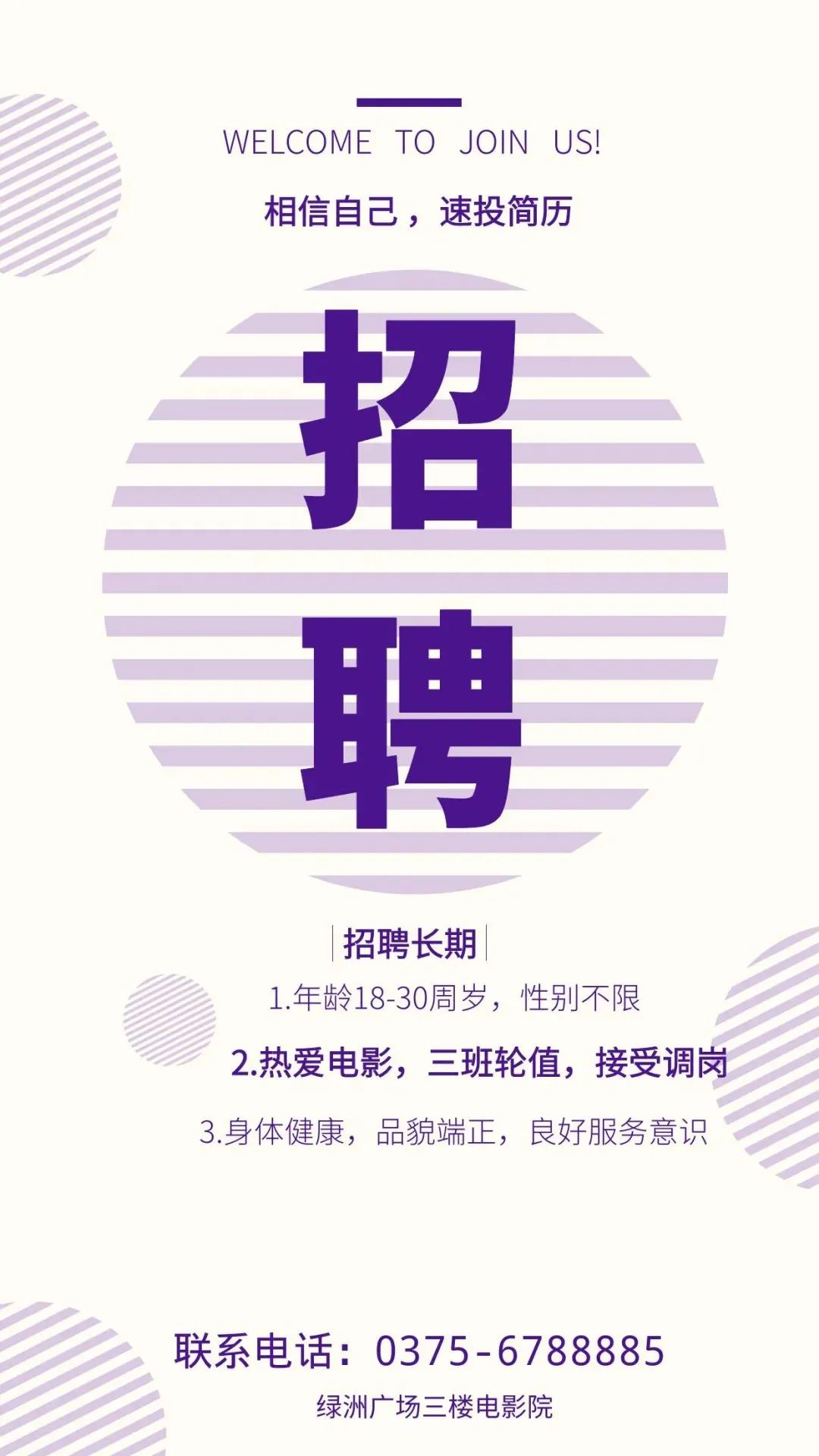 招人了.影院诚聘,就等你来!~每日影讯请查收!