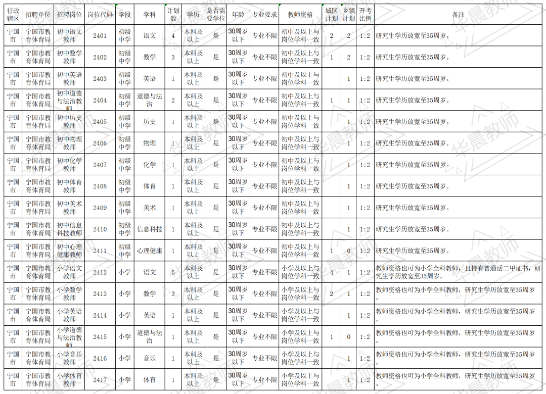 七、编制29名!2024年度安徽省宁国市中小学新任教师公开招聘公告