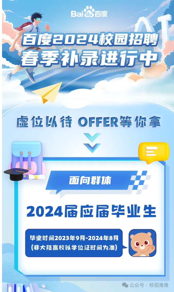 >百度2024届校园招聘春季补录!这些岗位还有offer!