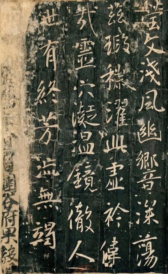 现存世所见的《温泉铭》是初唐时所拓,仅存48行,总共354个字。启功先生言:“此碑点画细处入于毫芒,肥处弥见浓郁,展现之际,便觉一方黑漆板上用白粉书写而水迹未干也。”