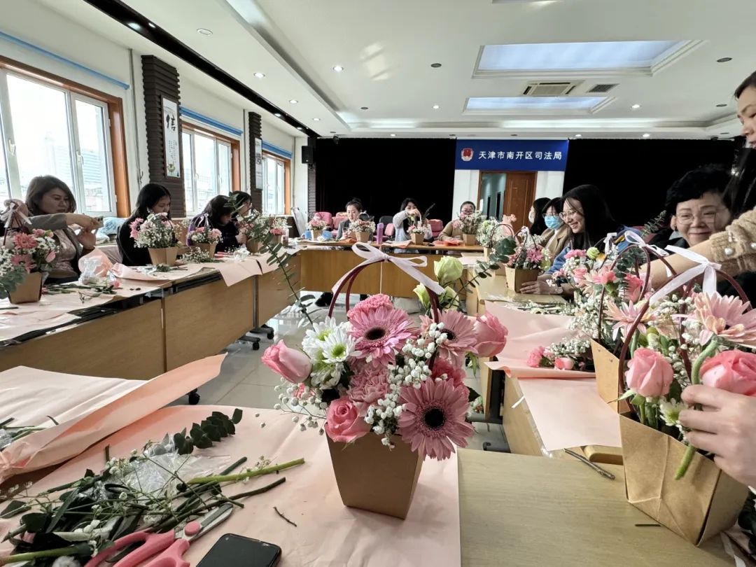 南开区司法局、区律工委组织开展“花香溢三月 巾帼绽芳华”三八妇女节主题插花活动, 40余名南开区女律师和司法行政系统女干部参加。