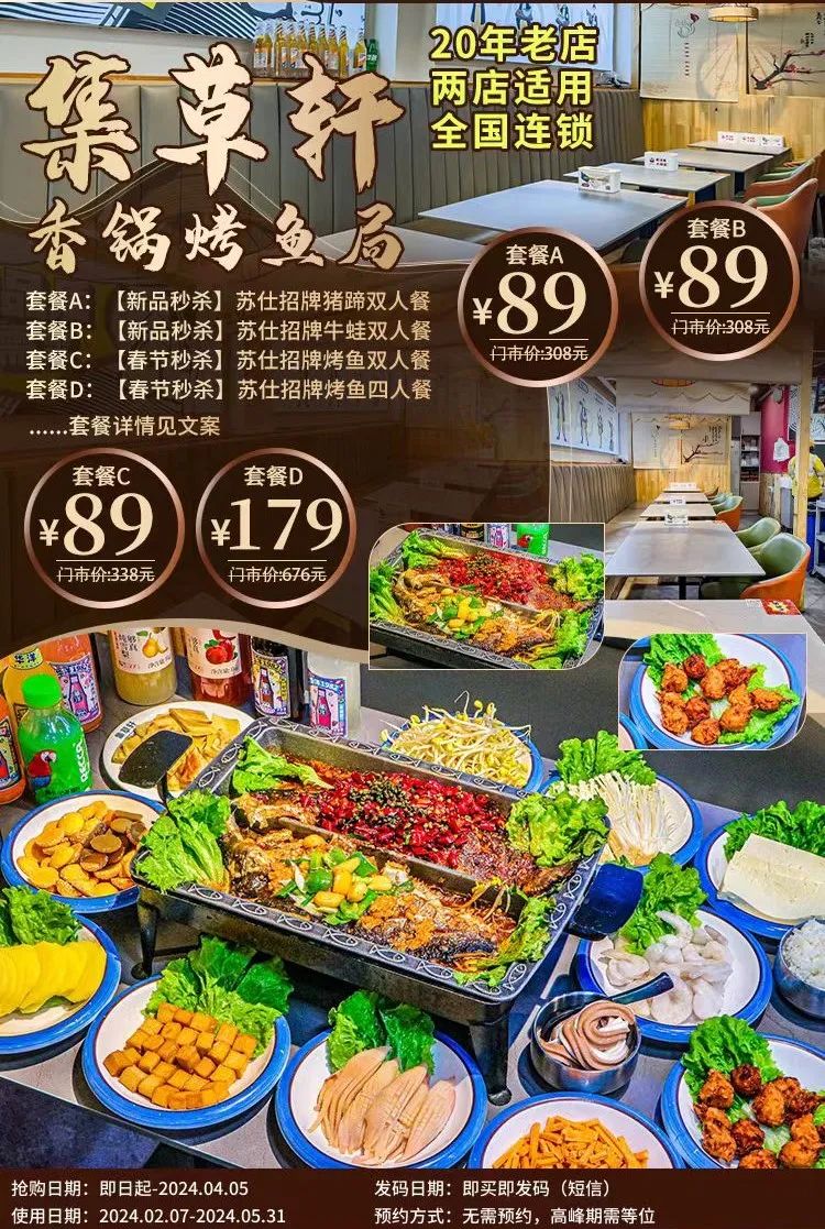 【春节秒杀】苏仕招牌烤鱼四人餐 179元