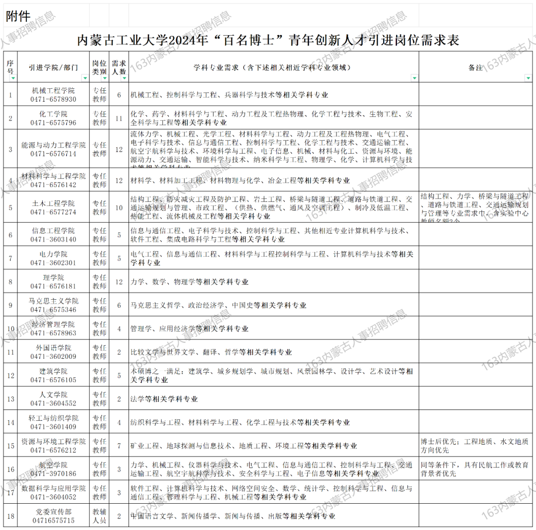附件:内蒙古工业大学2024年“百名博士”优秀青年创新人才岗位需求表