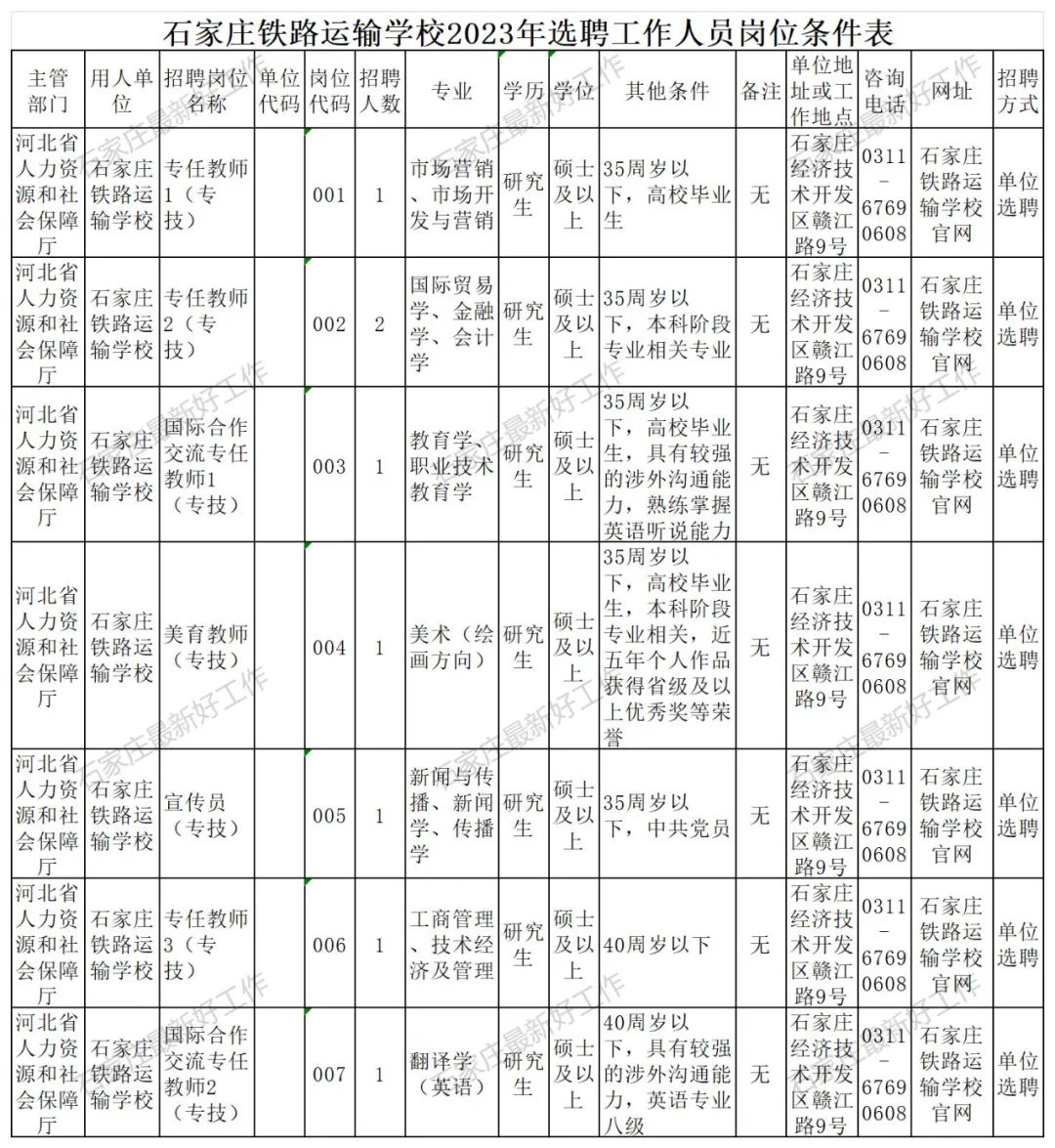 1.石家庄铁路运输学校2023年选聘工作人员岗位条件表