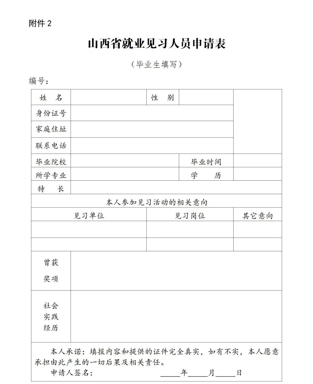 以高校毕业生身份报名就业见习的人员携带《山西省就业见习人员申请表》1份(附件2)、身份证、毕业证、学位证(本科及以上学历)原件及复印件2份、《就业创业证》;